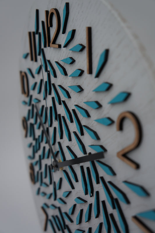14" Diamond Design Wood Clock, Teal