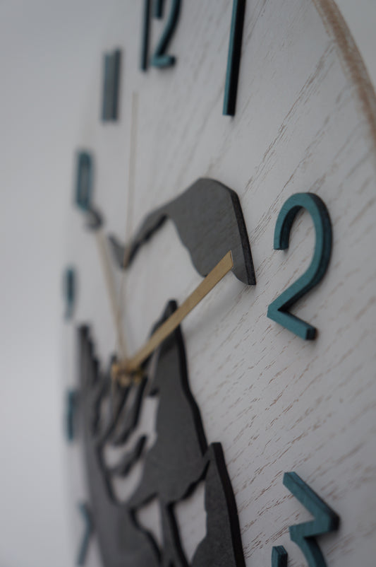 14" Mountain Themed Wood Clock, Teal and Gold