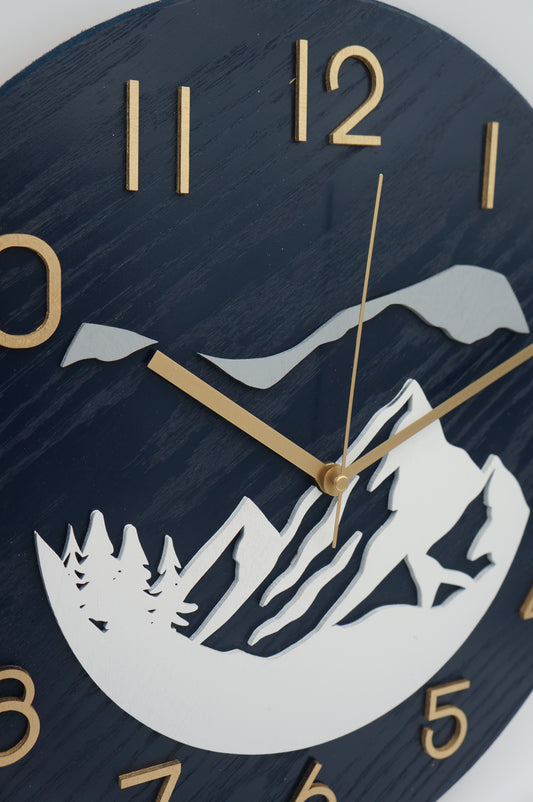 14" Mountain Themed Wood Clock Navy